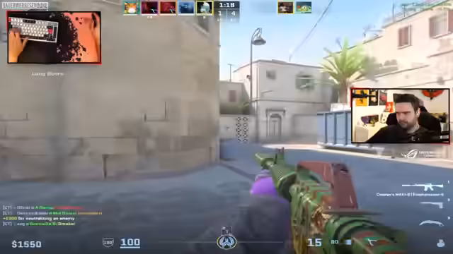 01:28:42Während des Spiels diskutiert der Streamer über seine Finanzen und CS:2-Items. Er erwägt, seinen Skins-Inventar im Wert von etwa 100.000 Dollar nicht zu verkaufen, sondern sie weiter zu halten oder in eine MSCI-Vault zu investieren. In der laufenden Runde gibt es taktische Diskussionen mit seinem Mitspieler Armin über Bombenlegung, Positionierung und das Timing von Angriffen.