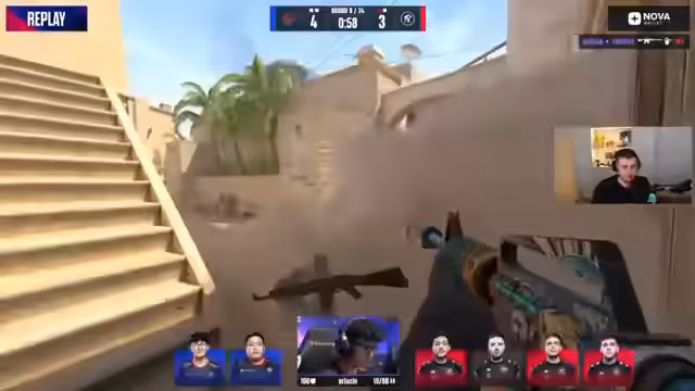 00:13:27Das erste Match zwischen Complexity und NRG auf der Map Inferno beginnt. Der Streamer kommentiert die Spielzüge und die Performance der Spieler. Er äußert sich über seine persönlichen Vorlieben für die NRG-Mannschaft, während Complexity bei seinen Picks 3-0 gesetzt war. Er zählt die 'Saves' an, also Runden in denen Teams sich sparsam Waffen kaufen um die Wirtschaft zu schonen, und stellt fest, dass dies auf Inferno besonders häufig geschieht. Das Spiel ist knapp und spannend, beide Teams zeigen solide Leistung.