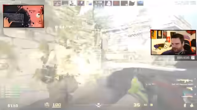 06:55:40Die Teilnehmer des Wingman-Turniers setzen verschiedene Strategien um, einschließlich des Einsatzes von Smoke-Granaten, Flashbangs und präziser Aim-Bewegungen. Der Streamer analysiert die gegnerischen Bewegungen und Taktiken, während sein Team versucht, durch koordinierte Angriffe und Verteidigung die Runden für sich zu entscheiden.