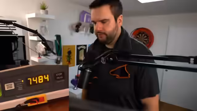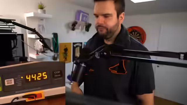 00:38:06Der Streamer beschreibt sein Trainingsgerät - ein hochwertiges Laufband, das bis 6,5 km/h kann. Seine ideale Lauftempo sind 4,5 km/h, da er daneben noch Aufgaben am PC erledigen kann. Neben dem Lauf trainiert er im mit Freigewichten und Geräten, hat aber noch Vorsicht bei schwerem Bankdrücken. Zum Abschluss macht er immer noch Kraft-Ausdauer-Training für den Bizeps.