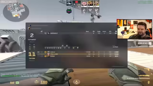 03:16:23Das lang erwartete Match gegen Team Anomaly beginnt. Die Teams einigen sich auf die Map Shipyard und starten als Counter-Terroristen. Vor dem Spiel werden Strategien besprochen, wie die Kontrolle über die Mitte der Map erlangt werden kann. Es wird eine enge Kommunikation im Voice-Channel etabliert, um Taktiken wie das Flankieren des Gegners durchzuführen und so das Team zum Sieg zu führen.