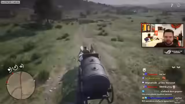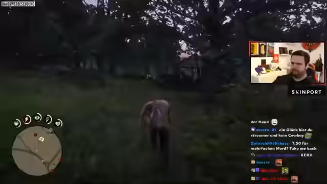 01:29:27Der Stream beginnt mit einem kurzen Recap der vorangegangenen Folge von Red Dead Redemption 2, in der der Schatz gesucht und eine Frau mit ihrem Bruder/Sohn geholfen wurde. Die Geschichte um John wird nun fortgesetzt, indem direkt die nächste Mission anvisiert wird. Ein Ziel ist es, den Ruf der Figur zu verbessern, weshalb die Protagonisten zunächst friedlich unterwegs sind, auch wenn sie von vielen unfreundlichen Menschen angesprochen werden. Ein Pferd namens Lago wird beschrieben, das schnell Ausdauer verliert und mit Kräutern wie Sandthymian und Salbei versorgt wird. Während der Erkundung der Karte wird ein Ort mit einem toten Falken und roten Blüten entdeckt, dessen Sammlung jedoch vergessen wird.