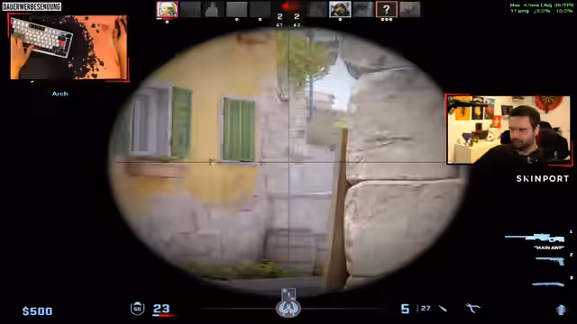 01:44:47Es kommt zu einem Doppel-AWP-Duell, bei dem sich entscheidet, wer der bessere AWP-Spieler ist. Es wird über eine Wette um 20 fette Nugs oder Chili Cheese Nuggets bzw. 20 Tier 3 Subs gesprochen. Der Streamer äußert sich weniger begeistert von Chili Cheese. Es wird kurz überlegt, ob Tobi boosten soll, was aber aufgrund von Verdauungsproblemen abgelehnt wird. Rahina hat bereits einmal verschossen. Der Streamer berichtet, niemanden gesehen zu haben, erhält aber eine Dasefisch und bittet um Hilfe am Arsch. Es wird kurz geradelt, um den Plant zu vereiteln. Es wird die Position eines Gegners im rechten Blumenkasten ausgerufen. Es wird überlegt, ob man mit dem Sprung über den blauen Container schauen soll. Der Streamer macht drei Kills mit der AWP. Es wird über den Kauf einer P90 diskutiert, die aber als Quatsch abgetan wird. Es wird über den Blutmond gesprochen und ob er in verschiedenen Regionen sichtbar ist. Stick wird für 58 Monate gedankt. Es wird erwähnt, dass in Südhessen kein Mond zu sehen ist.