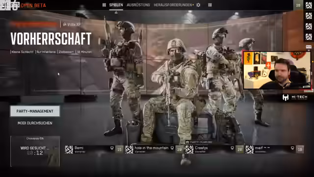 00:14:12Der Stream wird mit Battlefield 6 eröffnet. Der Streamer plant, Drops zu aktivieren und möchte mit einem Squad spielen. Er erwähnt technische Aspekte wie seinen Monitor (Zoe XL 86 mit 600 Hz) und plant später einen Wechsel zu einem OLED-Monitor. Die Suche nach geeigneten Squad-Mitgliedern ist im Gange, und es gibt eine neue Spielmodus namens 'King of the Hill', der 8 gegen 8 gespielt wird.