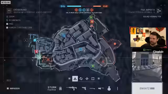 05:21:02Der Streamer beschreibt eine 'fette Movie-Szene', als er es schafft, den A-Sektor als Angreifer einzunehmen, was ihm zuvor noch nie gelungen ist. Er überlegt, ob er seine Position halten oder spawnen und helfen soll. Als Medic versucht er, seine Kameraden zu unterstützen, während er von den Gegnern angegriffen wird. Nachdem er den Sektor erfolgreich verteidigt hat, kommentiert er, dass die nächsten Sektoren schwieriger sein werden, und das Team darauf vorbereitet sein muss, immer links zu halten. Der Streamer zeigt sich beeindruckt von der erreichten Position und der Koordination des Teams.