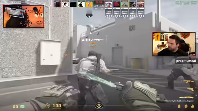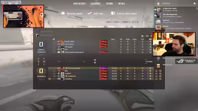 00:12:19Die Lobby stellt sich auf das anstehende Spiel vor. Der Streamer wechselt seinen Monitor von einem 24-Zoll auf einen 27-Zoll-Bildschirm, um eine Facecam in Streaming-Qualität nutzen zu können. Es werden Taktiken für das aktuelle Map-Setup besprochen, inklusive Pläne für Boosts, das Platzieren von Smokes und Flashes auf den Positionen B und Heaven. Auch die Rolle von Armin in der Strategie wird definiert.