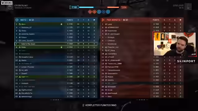 06:20:46Das Squad wechselt den Spielmodus von Conquest zu Domination, um eine frische Lobby zu finden und technische Probleme zu umgehen. Einige Spieler sind vom Spiel abgestürzt, doch die Warteschlange ist kurz. Das Team positiv, dass die Vollversion des Spiels bisher erstaunlich wenige Bugs aufweist und das Gameplay sauber läuft. Ein Audio-Interface-Problem bei einem Teammitglied wird erwähnt.
