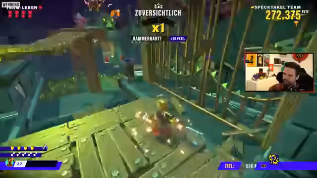 02:54:11Das Team arbeitet zusammen, um Rätsel zu lösen und Hindernisse zu überwinden. Es gibt Diskussionen über die richtige Vorgehensweise und die Notwendigkeit, als Team zu agieren. Der Streamer bemerkt einen Doppeljump und beschreibt die Umgebung als gefährlich. Er interagiert mit verschiedenen Objekten wie Knöpfen, Schlössern und Kisten, während er versucht, den weiteren Weg zu finden.