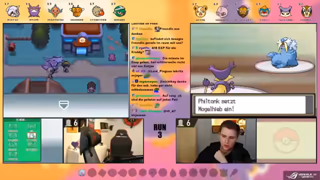 00:31:35Während des Streams gibt es intensive Kämpfe gegen Trainer und wilde Pokémon. Das Team wird durch verschiedene Attacken und Strategien auf die Probe gestellt. Der Streamer versucht, seine Pokémon zu schulen und deren Attacken zu verbessern. Sie tauschen gelegentlich Pokémon aus, um ihre Teamstärke zu optimieren. Dabei gibt es auch Diskussionen über die Benennung der Pokémon und ihre potenziellen Entwicklungen. Sie lernen, dass zufällige Items und Attacken einen großen Einfluss auf den Kampfverlauf haben können.