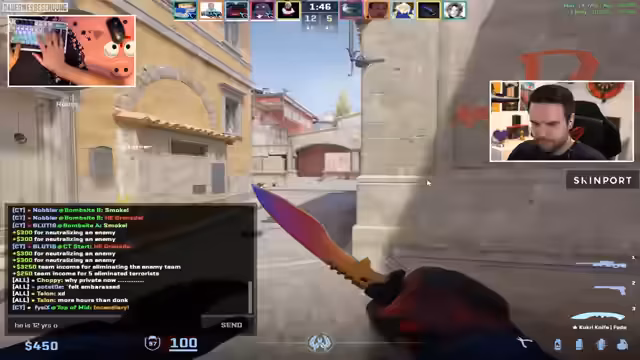 04:10:13Während des CS2-Spiels wird über den Skin-Handel gesprochen. Der Streamer zeigt sich mit einer für 180 Euro gekauften Kukri-Fade zufrieden, deren Wert seitdem gestiegen ist. Er spekuliert auf einen weiteren Preisverfall des Marktes nach dem Release neuer Messer und Handschuhe und kündigt an, dies für weitere Schnäppchen zu nutzen. Auch ein Trade-Up-Event für ein Gutknife wird erwähnt, bei dem er auf ein gutes Ergebnis hofft.