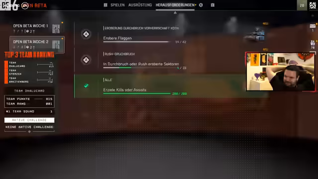 Bei dem mehrtägigen Battlefield 6 Wettbewerb stellt sich ein Team aus vier Spielern diversen Herausforderungen. Das Ziel ist es, durch das Erfüllen von Aufgaben wie Heli-Kills, Panzerzerstörungen oder spezifische Waffeneinsätze möglichst viele Punkte zu sammeln. Trotz technischer Schwierigkeiten und strategischer Gegenwehr gelingt es dem Team, mehrere Challenges erfolgreich abzuschließen. Der Fokus liegt auf guter Teamarbeit und taktischem Vorgehen, um im internen Ranking vorne zu liegen.