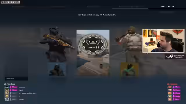 00:07:44Der Streamer begrüßt die Zuschauer zum wahrscheinlich letzten Stream der Woche aus der Schweiz, da er bald nach Deutschland zurückkehren wird. Er plant, erneut im Premier Matchmaking sein Glück zu versuchen, um seine ELO zu verbessern. Aktuell steht er bei 89 Siegen und hat noch 36 Tage bis zum Saisonende, wobei das rote Ranking noch weit entfernt ist. Es wird erwähnt, dass ein 30-sekündiger Delay im Stream aktiviert ist, was zu anfänglicher Verwirrung führte, warum niemand im Chat grüßte. Die Schwierigkeiten des ELO-Systems werden diskutiert, insbesondere der Anti-Smurf-Schutz, der dazu führt, dass Spieler mit niedrigerer ELO, selbst bei Siegen, deutlich weniger Punkte erhalten als höher gerankte Teammitglieder. Dies erschwert das gemeinsame Hochranken erheblich und führt zu Frustration.