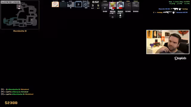03:53:47Die Spieler befinden sich in einem intensiven Gefecht, wobei der Fokus auf den Bewegungen der Gegner und dem Einsatz von Smokes liegt. Es wird überlegt, ob die Gegner durch die Smoke springen oder sich anders positionieren. Die Kommunikation ist angespannt, mit wiederholten Rufen nach Positionen und Warnungen vor Flashes. Ein Spieler bemerkt, dass die Gegner Smokedoolies kaufen, was auf eine geschwitzte Runde hindeutet. Die Teammitglieder versuchen, die Bewegungen der Gegner zu antizipieren und sich entsprechend zu positionieren, wobei Banane und Mitte als Schlüsselbereiche identifiziert werden. Die Runde ist geprägt von schnellen Entscheidungen und dem Versuch, die Kontrolle über die Karte zu erlangen, während gleichzeitig die Defensive aufrechterhalten wird. Die Diskussion über die Schriftart in CS2 und die Monitor-Halterung zeigt, dass auch technische Aspekte und persönliche Vorlieben eine Rolle spielen.