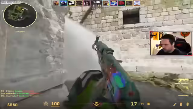 00:50:50Die erste Map geht mit 13:8 an das Streamer-Team. Der Streamer ist mit dem Sieg zufrieden, erwähnt aber, dass die Gegner 'horny' auf sie waren, also besonders motiviert und aggressiv. Die Gegner, die er als '3K-Eloatzen' (Spiele mit hohem Skill-Level) beschreibt, wurden neutralisiert. Er kritisiert, dass zu viele Teammitglieder sofort gestorben sind, was ein Retick unmöglich macht. Die Map, die sie gerade gespielt haben, war Dust II.