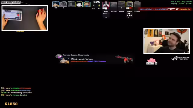 00:09:39Der Stream beginnt mit einer herzlichen Begrüßung und dem Eintritt in die vierte Saison der CS2 Premier Matchmaking. Der Streamer äußert seine Motivation, weitere Ranks zu erreichen und teilt seine aktuelle Platzierung mit. Es folgt eine lockere Unterhaltung über vergangene Aktivitäten, wie eine Wanderung, und Pläne für den weiteren Verlauf des Streams. Nebenbei werden technische Aspekte wie das Mikrofon und Getränkeempfehlungen angesprochen, um den Stream für die Zuschauer angenehmer zu gestalten.