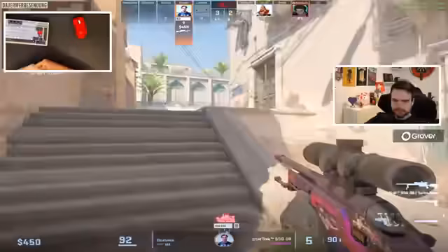 03:33:59Nach mehreren intensiven Runden auf der Map Dust II wird das Match beendet. Das Team des Streamers hat knapp mit 3:2 gewonnen. Trotzdem fühlt sich der Streamer unzufrieden mit dem Spielverlauf, da sie in mehreren Spielen eine Führung verspielt haben. Die Runden wurden teils durch schlechtes Timing und Fehlkalkulationen verloren.