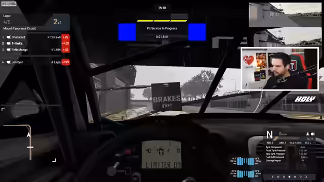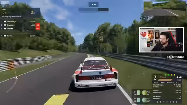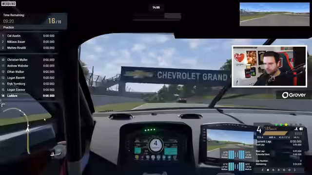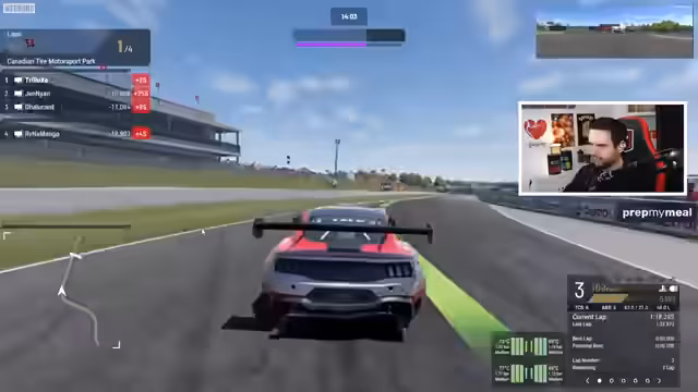 00:02:22Der Streamer kämpft weiterhin mit unkonstanten Telekom-Leitungen, da Glasfaserkabel zwar verlegt, aber noch nicht angeschlossen wurden. Er bereitet sich auf den ersten Game-Start um 15 Uhr bei Major Taken From You vor, wird aber die erste Map verpassen, da er bis 16 Uhr in Project Motor Racing mit Dalu, Mango und Jen spielt. Er testet die Controller-Lautstärke und passt sie an, um sicherzustellen, dass die anderen Stimmen im Voice-Chat nicht übertönt werden. Während einer Testfahrt im Spiel bemerkt er Schwierigkeiten beim Wechsel in die First-Person-Perspektive und kämpft mit der Steuerung, insbesondere mit der Kameraführung durch den rechten Stick. Er versucht, Gegner einzuholen, stellt aber fest, dass er am Ende des Feldes liegt und mit den Track Limits zu kämpfen hat, während er gleichzeitig die Solidität gegnerischer Fahrzeuge für zukünftige Interaktionen mit Dalu überprüft.