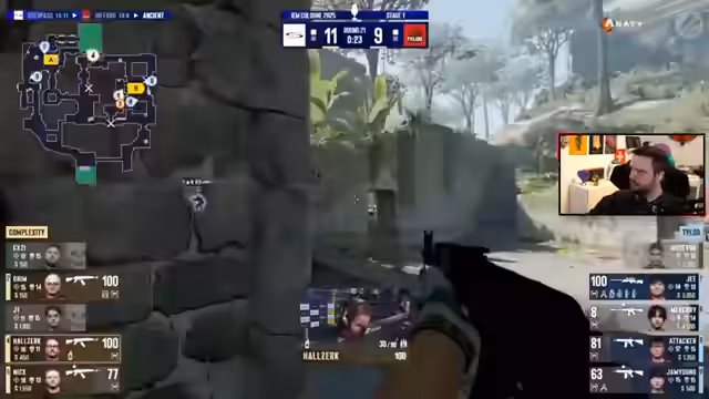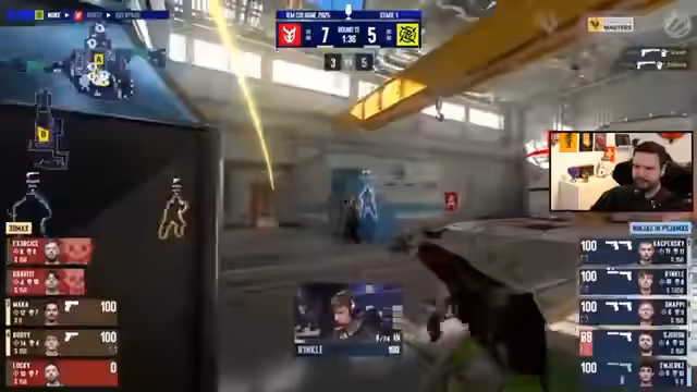 03:54:35Der Stream beginnt mit technischen Problemen auf YouTube, bei denen das Bild nicht korrekt geladen wird. Nach dem Wechsel zu Twitch wird das Problem jedoch gelöst. Es folgen Diskussionen über die Videoqualität, die auf Nuke oft schlecht sein soll. Währenddessen kommentiert der Streamer ein frühes Spiel auf Nuke und analysiert einen Blend, bei dem Exercise in Richtung A geht, während ein Mitspieler durch den Ventilator Richtung B geht. Die erste Runde geht an die Ninjas in Pyjamas.