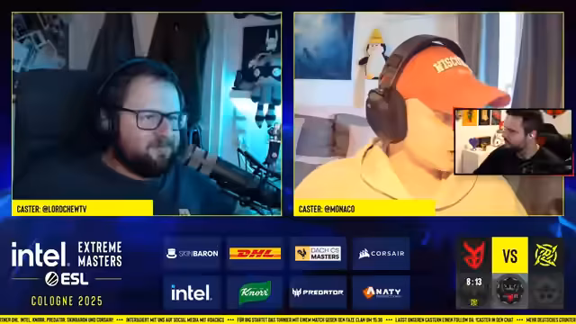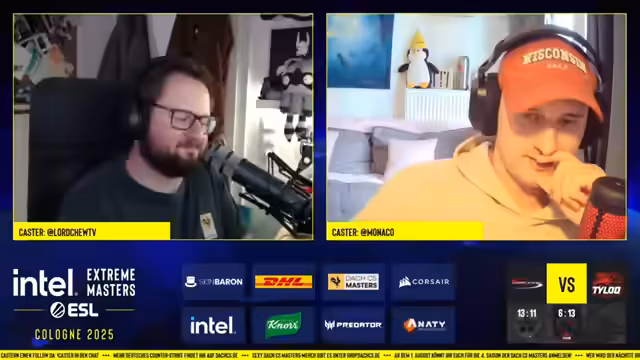 02:53:14Der Streamer plaudert über verschiedene Themen, von einem alten Lieblings-Logo von Complexity bis hin zur Belustigung über einen in der Öffentlichkeit gefilmten Streit. Auch private Geschichten kommen zur Sprache, wie der Verlust seines Co-Casters durch eine angebliche Gehörgangsentzündung. Es herrscht Vorfreude auf die persönliche Teilnahme an der IEM, wobei sie auch auf die Planung von Meet & Greets und mögliche Drehereignisse vorbereitet sind.