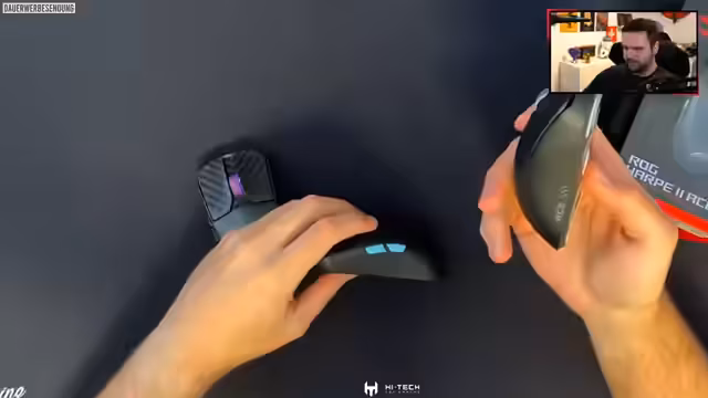 05:30:08Der Streamer präsentiert im Detail die neue Logitech Harp Ace 2 Maus und vergleicht sie mit ihrem Vorgänger, der Harp Ace, und der Carbon-Variante, der Harp Ace Extreme. Er betont den geringen Gewichtsunterschied von 54 Gramm auf 48 Gramm und stellt fest, dass sich das Handling kaum ändert. Wesentliche Unterschiede liegen in der Oberfläche, die nun matter und griffiger ist, sowie im neuen Schalter und zwei statt vier großen Gleitfüßen. Der Hauptvorteil wird in der browserbasierten Konfigurationssoftware 'Gearlink' gesehen, die einstellen von DPI, Polling Rate, Belegungen und sogar Akkustatus ermöglicht, ohne zusätzliche Software installieren zu müssen, was sie ideal für den mobilen Einsatz macht.