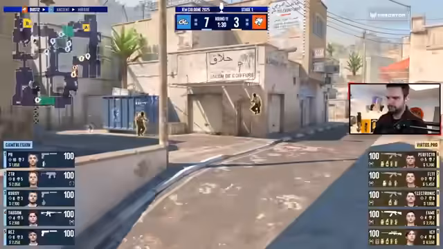 00:32:47GamerLegion dominiert das erste Map Overpass und geht schnell mit 6-0 in Führung. Virtus Pro scheint Probleme zu haben, ins Spiel zu finden. Der Streamer bewundert die Leistung von GamerLegion und stellt fest, dass das Team sehr stark auftritt. Virtus Pro fordert eine Pause, um die Taktik zu überdenken, während GamerLegion weiter Druck ausübt.