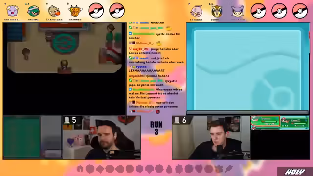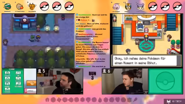 01:58:50Aufgrund eines technischen Problems müssen die Streamer Kevin und ein Begleiter ihren Pokémon Soul Link Run von vorne beginnen. Das Problem entstand nach einem Emulator-Update, bei dem Kevin seine Save-Files verloren hat. Dieser Umstand ist aber nicht schlimm, da sie ohnehin nur noch ein Pokémon hatten und vermutlich neu hätten beginnen müssen. Für den neuen Run werden die Settings angepasst, insbesondere Items vollständig randomisiert. Zusätzlich wird ein Special für jede Pokémon-Niederlage angekündigt, bei dem ein echtes Pokémon-Pack aufgemacht wird.