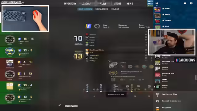 00:13:50Im Stream wird Premier Matchmaking gespielt, wobei der Streamer über aktuelle Erfolge berichtet: Kevin hat 83 Siege und Jimmy Kicks 122 Siege. Der Streamer erwähnt, dass er in der Abwesenheit von Kevin fast ausschließlich Solo gespielt hat. Es werden auch technische Änderungen im Spiel diskutiert, wie die Einführung von AIMPUNCH bei Kevlar und die Leistungsprobleme der neuen Cash-Map-Version. Der Streamer versucht, verschiedene Strategien wie "Cash-or-Face-it" und das Nutzen von Workshops auszuprobieren.