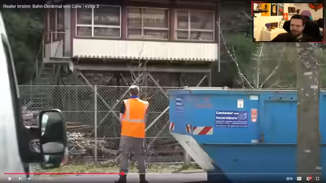 03:37:50Die Rubrik wendet sich zwei Themen zu: Erstens ein Haus, das um 3,19 Meter zu breit ist und dessen Bewohner nun den Abriss befürchten. Der Streamer ist entsetzt über die Dimension und den vermutlich immensen Kosten, die durch den Fehler des Architekten entstanden sind. Zweitens wird die Geschichte eines verlassenen Bahndenkmals in Kalf beleuchtet, das seit Jahren marode ist. Die Deutsche Bahn lässt es für 1000 Euro pro Tag von einem Wachmann bewachen, was der Streamer als sinnlose Verschwendung von Geld und Ressourcen ansieht und eine Verlegung an einen zugänglicheren Ort fordert.