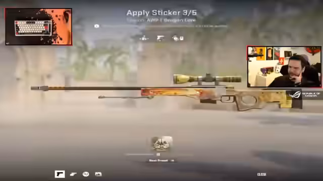 00:19:23Der Streamer und seine Freunde starten eine CS2-Matchmaking-Partie. Teamzusammensetzung, Waffen- und Sticker-Designs werden besprochen. Während des Spiels gibt es viel Kommunikation und strategische Planungen. Es werden die Vorzüge von roten Stickern auf einer AK Redline gelobt und alternative Sticker-Optionen wie den Battlescard vorgeschlagen.