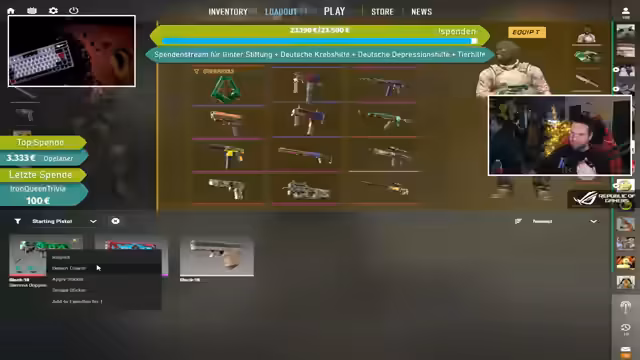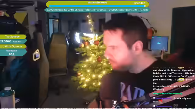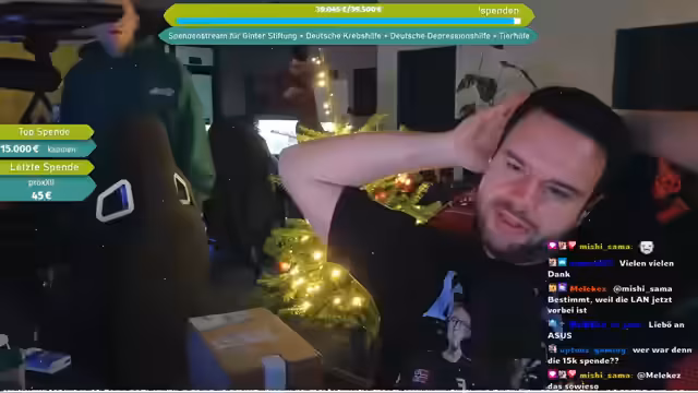 00:16:44Eine 375€-Spende von Smims geht für die Matze-Ginta-Stiftung, Deutsche Krebshilfe, Deutsche Depressionshilfe und Hunderettung Europa e.V. ein, wodurch der Gesamtstand auf 23.000€ steigt. Später folgt eine 40€-Spende von Knapex. Der größte Boost ist eine monumentale 15.000€-Spende von Caprienne, die über Banküberweisung (nicht PayPal/Kreditkarte) wegen Betragsobergrenzen realisiert wurde. Dies erhöht das Spendenvolumen auf insgesamt 38.190€, wodurch jede der vier Wohltätigkeitsorganisationen knapp 10.000€ erhält – ein Durchschnittsboost von 6.000€ auf 10.000€ pro Charity.