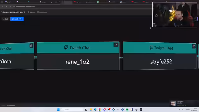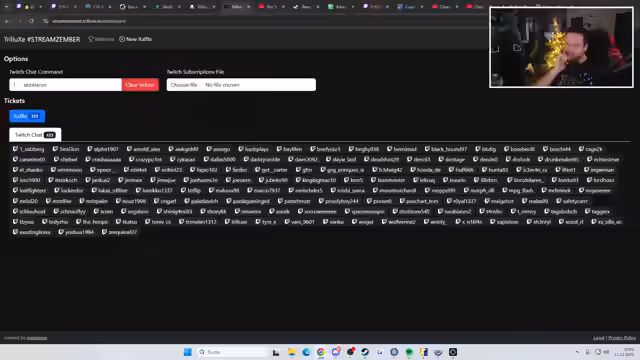04:42:36Das Gewinnspiel wird um 22:15 Uhr abgeschlossen, nachdem 400 Teilnehmer '!ROG' gesendet haben. Nach kurzer Spannung wird 'Sonic Leo' als Gewinner bekannt gegeben – ein extrem aktiver Chatter, der seit über einem Jahr jeden Tag im Chat aktiv war und über 500 Nachrichten im Dezember geschrieben hat. Trilluxe gratuliert ihm und wird sich via Twitch-Whispers melden. Dies war das letzte Giveaway der LAN, bei dem unter anderem drei Messer, zwei Tastaturen mit Mäusen und ein Gaming-Monitor verlost wurden.