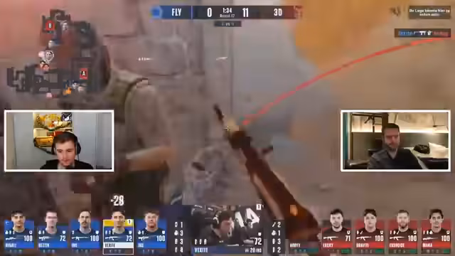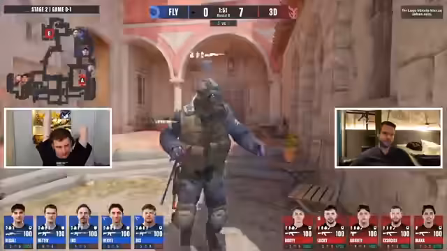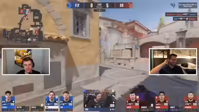 01:19:08FlyQuest erlebt eine katastrophale Phase, mit back-to-back 12-0 Halbzeiten gegen Navi und 3D Max. Kuriose Spielmomente, wie ein Wallbang-Headshot durch eine Mauer in der Banane und ein Jumpshot, der als 'absolute Frechheit' bezeichnet wird, tragen zur Frustration des Teams bei. Die Spieler von FlyQuest, insbesondere JKS, wirken sichtlich frustriert und 'voll Tilt'. Es wird diskutiert, ob solche Unglücksmomente einfach zum Spiel gehören oder auf mangelnde Konzentration zurückzuführen sind.
