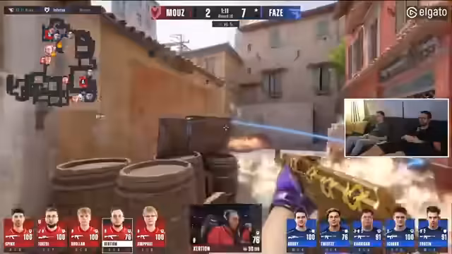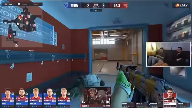 03:29:22FaZe gewinnt die erste Map nach einer starken ersten Halbzeit und einem knappen Close. Maus verliert trotz früher Führung durch einen entscheidenden Bruch, der das Momentum kostet. FaceClans steigende Form und FaZes Inferno-Winrate (100% auf Train, 82% auf Info) werden als kritische Faktoren genannt.