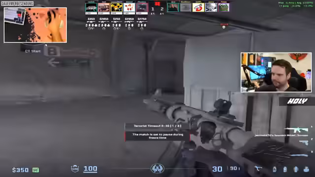 02:55:05Maus führt sechs Runden in der zweiten Halbzeit, hat aber finanzielle Probleme mit nur 2-3k Dollar zwischen den Runden. Ein Timeout für FaceClan wird angekündigt, da Maus' Utility-Einsatz eingeschränkt ist. Die knappen Runden werden als entscheidend für den Spielausgang betont, da beide Teams nur noch vier Runden zum Map-Gewinn benötigen.
