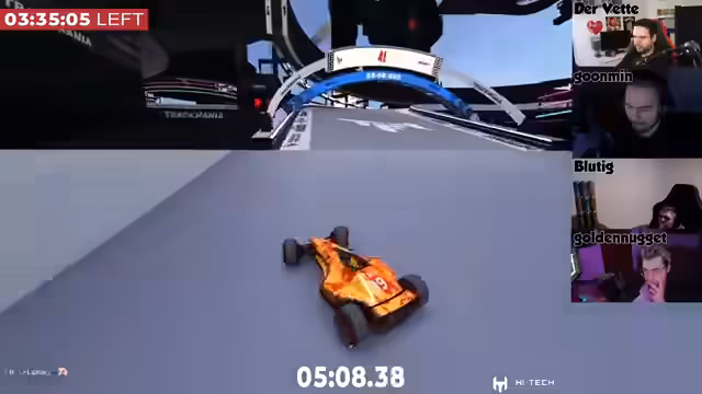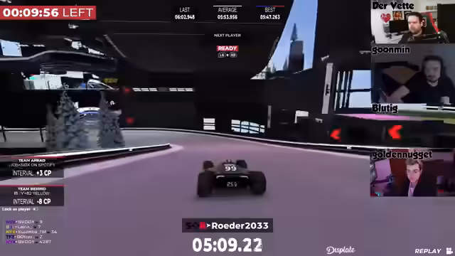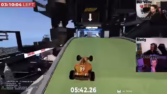 00:05:06Der Streamer begrüßt die Zuschauer zu den letzten fünf Stunden des 24-Stunden-Rennens. Er berichtet, dass die Fahrer Blutig und Golden Nugget das Team gut nach vorne gebracht haben und sie sich aktuell auf Satz 106 befinden. Er selbst fühlt sich nach etwa 6,5 bis 7 Stunden Schlaf recht gut und ist schnell eingeschlafen, da er am Vortag sehr erschöpft war. Im Voice-Chat sind Armin, Blutig und Golden Nugget anwesend. Blutig hat die Nacht durchgemacht und ordentlich gegrindet, ohne dass es zu bösen Überraschungen wie Server-Crashes kam. Das Team hat über Nacht ordentlich aufgeholt und befindet sich auf Platz 104, wobei der Abstand zu Platz 150 über 500 Checkpoints beträgt, was einen komfortablen Vorsprung darstellt. Es wird erwähnt, dass Armin noch fahren muss und Eskadin in einer halben Stunde den Adventskalender bringen wird.