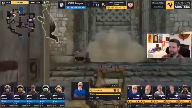 00:30:43Der Map-Pick und Ban-Prozess beginnt. Die Gegner bannen Inferno, die stärkste Map der Oldies. Die Oldies bannen Overpass. OBG Purple pickt Ancient, und die Oldies wählen Train. Die Decider-Map ist Mirage. Es wird eine Umfrage im Chat gestartet, ob der Cast mit oder ohne Facecam stattfinden soll, da Jens heute nicht dabei ist und der Auto-Observer eingesetzt wird. Die Zuschauer entscheiden sich für Facecam. Es wird kurz über die Herausforderungen des echten Lebens gesprochen, wie Steuererklärungen und TÜV-Termine in der Schweiz. Das Spiel auf Ancient beginnt. Die Oldies starten stark in die erste Pistolenrunde, wobei Eskadin einen wichtigen Clutch holt. Die Oldies zeigen eine dominante Leistung auf Ancient, der Pick-Map des Gegners, und führen früh mit 7:1. Es wird die Vermutung geäußert, dass OBG Purple ihre eigene Map überraschend schwach spielt.