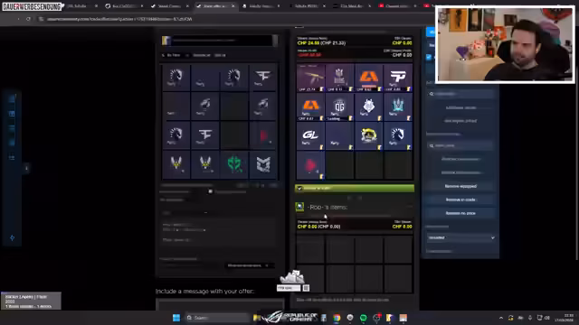 00:15:11Der Streamer meldet Erfolge in der CS:GO Competitive-Wertung: Teammitglieder haben den Gold-Rang erreicht oder sind kurz davor. Er selbst erwartet einen neuen wöchentlichen Drop und hofft auf ein spezifisches Skin-Modell, um ein Reaction-Video drehen zu können. Besonders erwähnenswert ist eine Anpassung im Skin-Handel von Skinbaron, die den Verkauf von certain Sticker-Kapseln einschränkt. Der Streamer stellt klar, dass er persönlich von dieser Änderung in der Schweiz nicht betroffen ist, da er das Angebot weiterhin nutzen kann.
