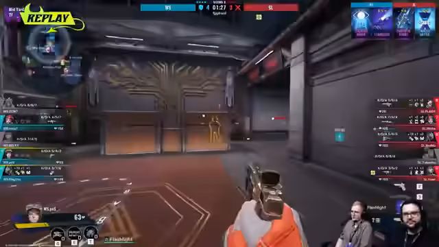 09:40:42Für das Publikum wird das einzigartige Overtime-System von "Frackbank" erklärt. Anders als in anderen Shootern handelt es sich hier nicht um ein 5-gegen-5, sondern um eine 1-gegen-1-Arena. Jedes Team wählt eine Reihenfolge für seine Spieler. Jeder gewonnene Kampf bringt das Team in die nächste Runde, solange bis ein Team vollständig ausgeschieden ist. Dies schafft eine dynamische und spannungsgeladene Entscheidungssituation. X entscheidet sich, als Erster in die Arena zu steigen.