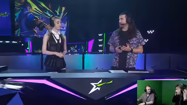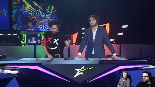 00:49:19Nach dem Auftritt auf der Bühne gibt es ein kurzes Gespräch über die Erfahrung. Manche Teams hatten geplante Moves, wie ein Fistbump, die jedoch nicht gezeigt wurden. Die Streamer kehren zu ihrer Moderationsposition zurück und müssen sich weiterhin mit den technischen Problemen der Headsets herumschlagen. Sie diskutieren, dass die Geräusche der Mikrofone nervend sind und eine Verbesserung für den nächsten Tag in Erwägung gezogen wird.
