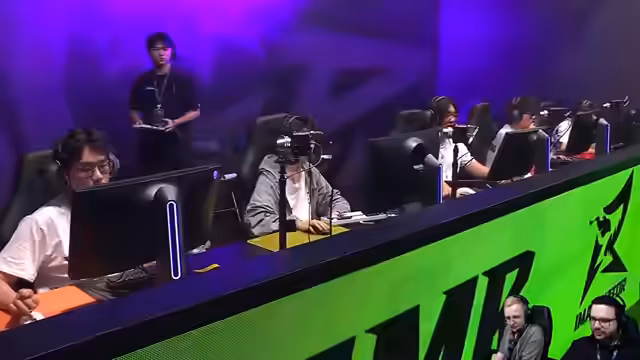 01:25:54Während des Laufs der Partie werden erhebliche technische Probleme deutlich. Der Haupt-Feed für das Casting leidet unter einem massiven Sound- und Bildverzug. Das kommentatorische Team versucht, dies durch manuelle Synchronisation des Feeds zu beheben, was jedoch nur teilweise gelingt. Die spielerische Analyse konzentriert sich auf die Stärken der Gegner, insbesondere ihre taktische Disziplin und die Nutzung spezifischer Charakterfähigkeiten wie 'Weapon-Morph', die als sehr 'busted' eingestuft wird.