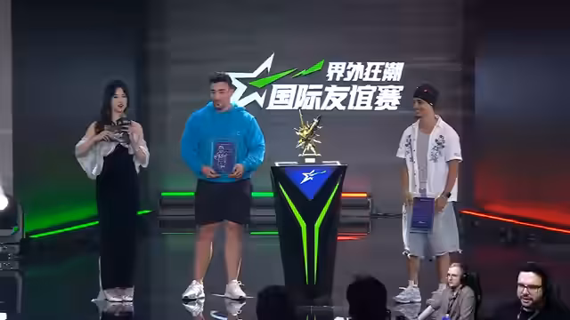 09:19:50Ein Showmatch am Sonntag vor dem Grand Final wird angekündigt. Der Streamer wird dort im Team mit Tens, Fugu, TCK und Requend antreten, mutmaßlich gegen chinesische Streamer. Dafür wurden in der Hotellobby bereits zukünftige Updates des Spiels getestet. Jeder Streamer hatte seine eigene Ausrüstung, wie eine Maus, dabei, da die Veranstaltung erst spät die Mitteilungsrichtlinien bekanntgab.