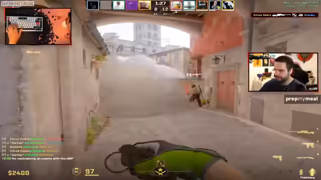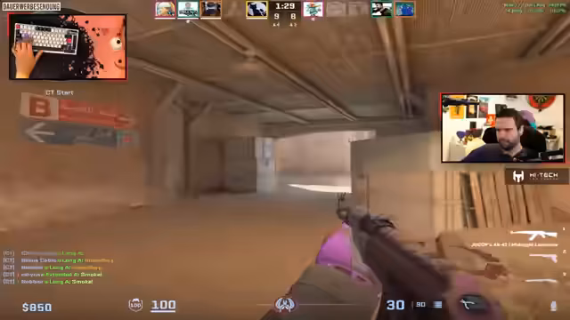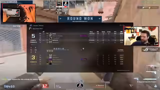 02:54:51Der Streamer kommentiert zunächst humorvoll seine eigenen Aktionen im Spiel, während er versucht, bestimmte Spielzüge auszuführen. Er interagiert mit seinem Mitspieler Marc, gibt Anweisungen und kommentiert dessen Spielweise, teilweise neckend, aber auch anerkennend. Es wird über Strategien diskutiert, wie man Gegner am besten angreift und welche Waffen man einsetzen sollte. Der Fokus liegt auf schnellen Entscheidungen und der Koordination im Team, um die Runde zu gewinnen. Dabei werden verschiedene Positionen und Taktiken besprochen, wie zum Beispiel das Flashen von Granaten oder das Einnehmen bestimmter Punkte auf der Karte. Die Kommunikation ist direkt und von schnellen Absprachen geprägt, um auf die sich ändernde Spielsituation zu reagieren. Es wird auch über die Leistung einzelner Spieler und deren Verbesserungspotenzial gesprochen, wobei konstruktive Kritik geübt wird, um das Teamspiel zu optimieren. Trotz einiger Fehler und unglücklicher Situationen bleibt die Stimmung positiv und der Fokus auf dem gemeinsamen Ziel, das Spiel zu gewinnen.