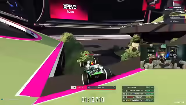 02:40:12Das Format von XP EVO 2025 wird detailliert erklärt: Acht Lobbies mit je 32 Spielern kämpfen im Rounds-Modus, wobei sich die besten 128 für Phase 2 qualifizieren. In Phase 2 gibt es Vier-Spieler-Free-for-All-Matches, wobei nur der erste Platz direkt in die Top 64 kommt. Zweitplatzierte haben im Ambit Purge eine zweite Chance, wo sie gegen andere Zweitplatzierte antreten, um die verbleibenden Plätze in den Top 64 zu füllen. Die Top 8 Spieler des Trackmania Community Circuits, bekannt als Ambits, sind direkt in den Top 64 gesetzt. Danach folgt ein klassisches Top 64 Double Elimination Bracket. Anschließend wird das Rennen von FIBO und Röder analysiert, die beide Schwierigkeiten haben. FIBO hat Probleme mit dem Zielsprung, während Röder ebenfalls zu kämpfen scheint. Der Streamer wechselt zwischen den Perspektiven der beiden Fahrer, um das Rennen zu kommentieren und ihre Fortschritte zu verfolgen. Es wird betont, dass FIBO die Map erst seit 20 Minuten trainieren konnte.