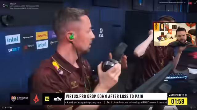 01:39:52Das erste offizielle Spiel bei der IEM Katowice 2024 beginnt mit dem Match zwischen paiN und Virtus.pro. Der Streamer kommentiert die ersten Taktiken und das Verhalten der Spieler, insbesondere wie Electronic und Flame das Spiel für Virtus.pro strukturieren. Es ist das erste Big Game mit dem neuen Line-up von Virtus.pro, und der Streamer stellt die Leistung des Teams in den ersten Runden in den Vordergrund.