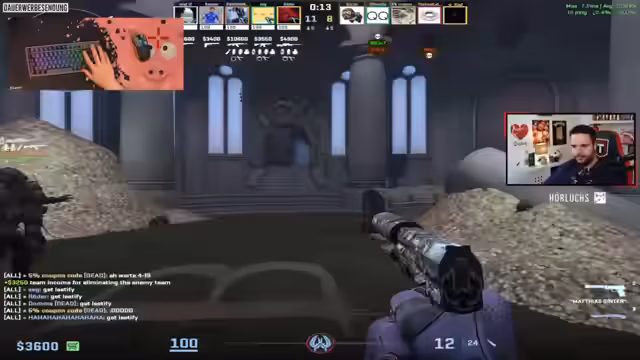 00:08:42Der Stream beginnt im üblichen Kellerstudio in Duisburg. Der Streamer berichtet über ein technisches Problem mit der Heizung und die Kälte im Raum. Zudem erwähnt er, dass gestern das Internet ausgefallen ist, was auf ein defektes Kabel in der Hauptplatine zurückzuführen war, das um 4 Uhr nachts behoben wurde. Trotz der technischen Herausforderungen startet der Stream in Counter-Strike 2 und stellt fest, dass die Performance mit stabilen 120 FPS im Vergleich zum bisherigen Setup erheblich besser ist.