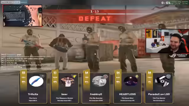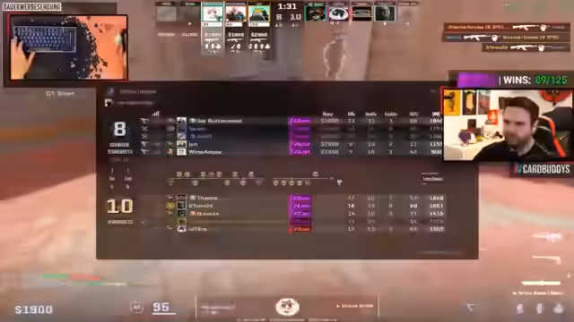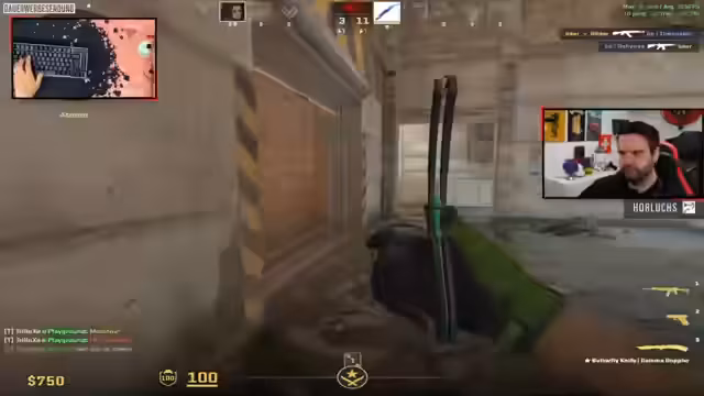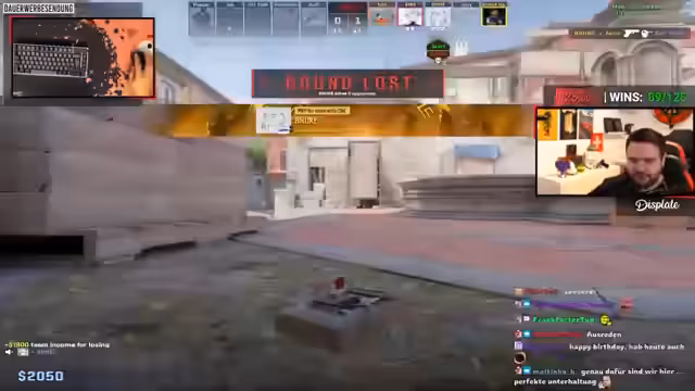 09:16:04Neben dem Hauptspielgeschehen gibt es weitere interessante Aspekte. So haben die "Oldies" eigene Trikots bestellt, auf denen sich auch Sponsoren wie die Deutsche Rentenversicherung befinden. Auch die Community ist aktiv, so hat ein Spieler namens Jupp versucht, neue CS2-Sticker-Kombinationen auf den Waffen zu entwickeln und sie im Team zu teilen. Auch eine Diskussion über die Möglichkeit, im Stream die Crosshairs der Spieler anstatt eines Standard-Crosshairs zu zeigen, wird angestoßen. Außerdem wird ein Raid von Armin "Destroy Blader" angekündigt, der parallel ein Marvel Rivals Match startet.