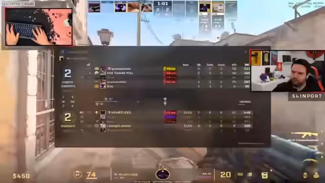 09:03:57Nach der Verifizierung der Server-IP und dem Aktivieren des Clean Feed beginnt das erste Spiel auf der Map DE-Train. Die Kamerafahrten durch Jens sofort sehr professionell und dynamisch, was zu großer Begeisterung im Stream führt. Die "Oldies" starten als Terroristen und versuchen, mit einem aggressiven und offensiven Spielstil zu überzeugen, anstatt viel Utility zu verwenden. Der Streamer zeigt sich beeindruckt von der hohen Qualität der Produktion und vergleicht sie mit professionellen Casts. Es werden auch die Profile der Spieler der "Oldies" im Player Showcase vorgestellt, mit Fokus auf ihren Spielstil und ihre Lieblingskarten.