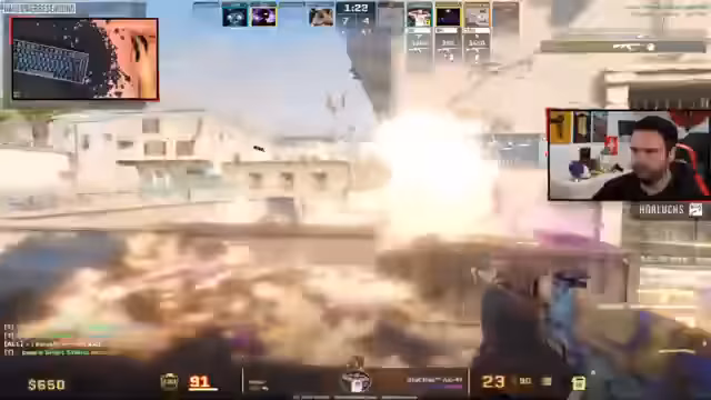 07:14:18In einem letzten verzweifelten Versuch, das Spiel noch zu drehen, werden unkoordinierte Taktiken wie Flaschenwürfe ("Smokes") in der Mitte und ein "Molly" versucht, um den Gegner aufzuhalten. Ein Spieler wird beschuldigt, den Push mit seinem "AWE" nicht zu unterstützen. Der Streamer resigniert und kündigt an, wahrscheinlich mit null Siegen aus dem heutigen "Premiere"-Modus hinzugehen, was er als "bitter" bezeichnet. Die Situation erscheint aussichtslos und frustrierend.