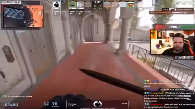 09:16:49Die Oldies liegen zunächst 0:2 zurück, drehen das Spiel aber und führen nun 4:2. Die Skins der Spieler werden kurz thematisiert, wobei Patrick aufgrund seines neuen Paracord-Messers als jemand mit besonders wertvollen Skins hervorgehoben wird. Jupp hat sich intensiv mit CS2-Stickerkombinationen beschäftigt und die WhatsApp-Gruppe der Oldies damit zugespammt. Die Sticker-Kombinationen von Jupp werden gezeigt, darunter eine mit doppelten Bizeps-Stickern und eine mit einem Clown, der eine Explosion aus seinem Finger schießt. Es wird erwähnt, dass Jupp möglicherweise in einem zukünftigen Match live zu sehen sein wird, um seine Kreationen zu präsentieren. Die Kameraführung wird gelobt, da sie von Jens von Anity professionell gestaltet wird, was einen deutlichen Unterschied zum Auto-Observer darstellt.