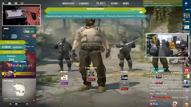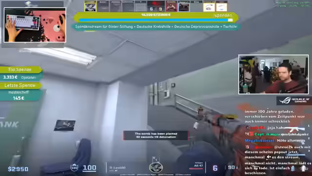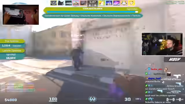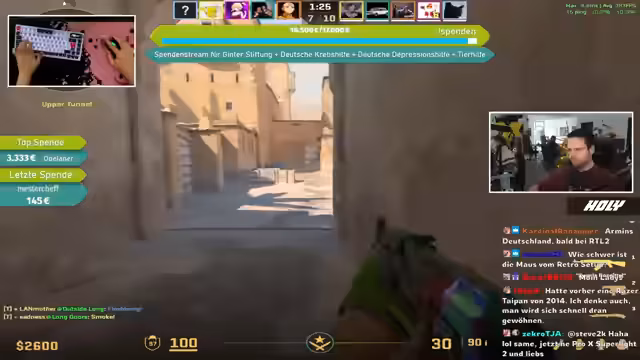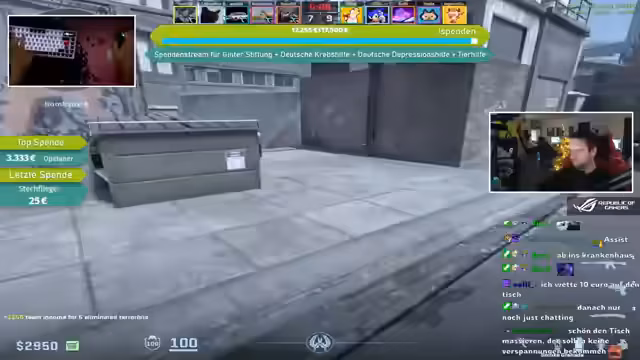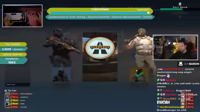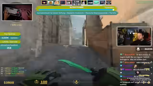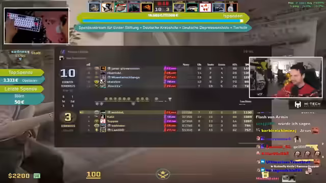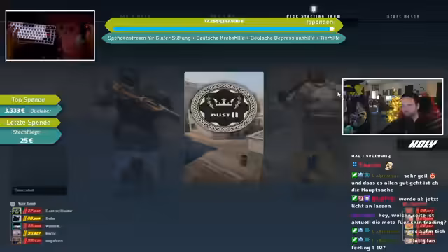 08:41:50Eine bedeutende Spende von Moppel99 wird erwähnt, während gleichzeitig über Änderungen im CS:GO-Drop-System diskutiert wird. Es wird berichtet, dass der seltene Drop-Pool entfernt wurde und Prisma-Kisten im Wert stark gestiegen sind, da sie nicht mehr als seltene Drops erhältlich sind. Zuvor hatten LAN-Namen in Spielerprofilen zu erhöhter Aufmerksamkeit von Gegnern geführt, weshalb größtenteils auf normale Namen umgestellt wurde, um die Privatsphäre zu schützen und Profilüberprüfungen zu vermeiden.